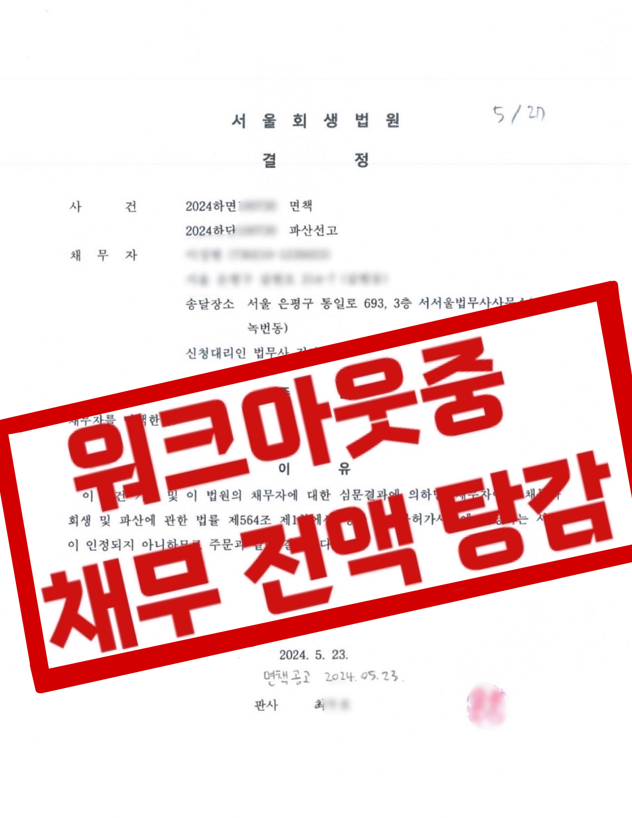 [ 워크아웃중 파산신청 전액 탕감 성공사례 ]